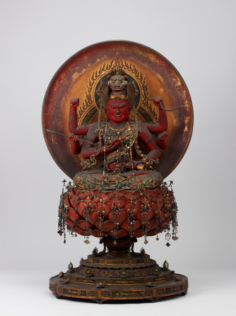 Aizen Myo-o (Ragaraja) is one of the Myo-o (Wisdom Kings) venerated in Buddhism, a deity who purifies desires and earthly passions, leading practitioners to enlightenment.